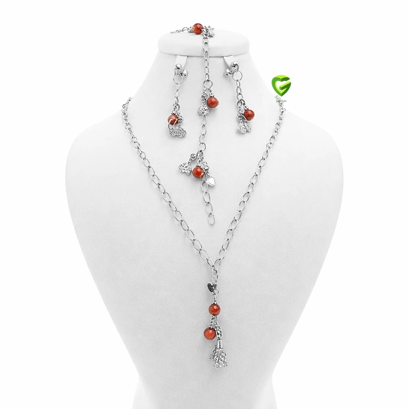 | طول: | طول سینه ریز 44 سانتی متر و طول دستبند 18 سانتی متر و ارتفاع گوشواره حدود 5 سانتی متر |